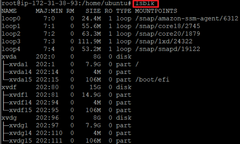 root@ip-172-31-38-93:/home/ubuntu# lsblk