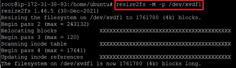 resize2fs 명령의 결과 마지막에 나오는 blocks는 이 파일시스템의 4k 블럭 숫자를 의미