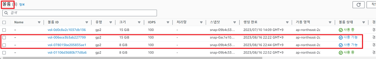 이제 3개의 볼륨이 temp EC2에 생성이 되었다.