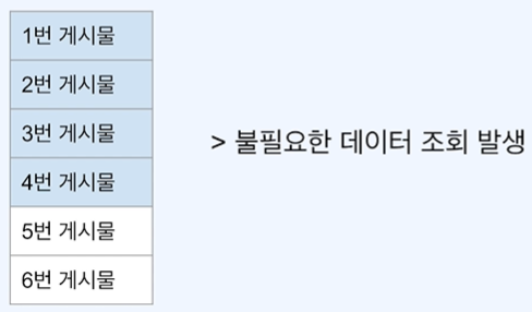 - 전체 페이지의 크기가 클수록 전체 사이즈를 구하는 것 자체가 큰 부하가 될 수 있음