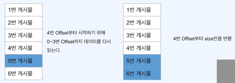 4번 이전의 데이터를 보지 않고, 4번 이후의 데이터부터 데이터를 읽어서 사이즈만큼의 데이터를 찾아 반환함