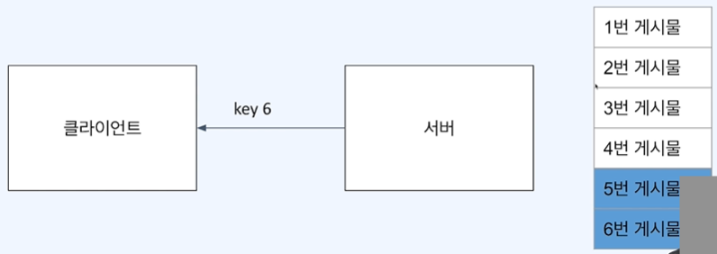 - 서버는 마지막 key 번호를 클라이언트에게 준다. (다음 요청시에 클라이언트가 사용함)
